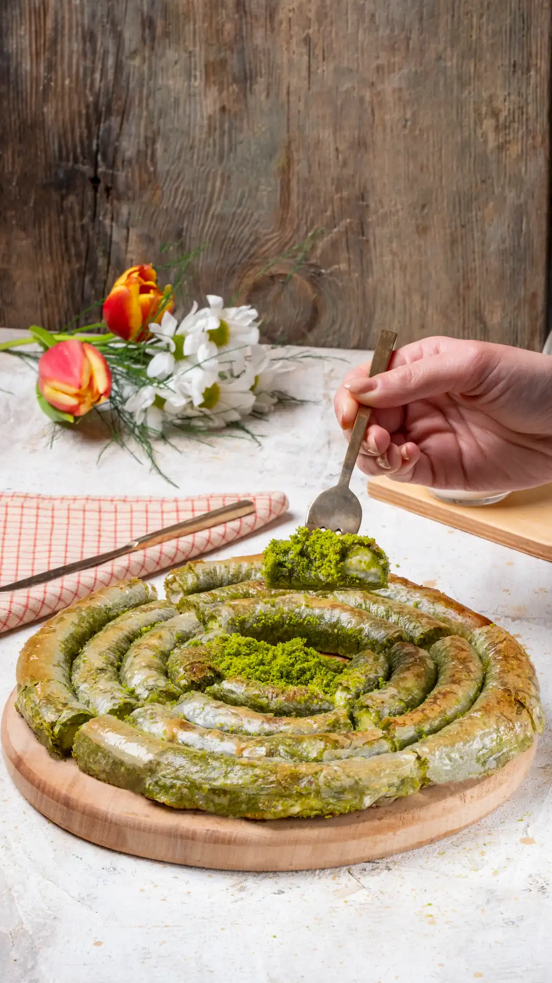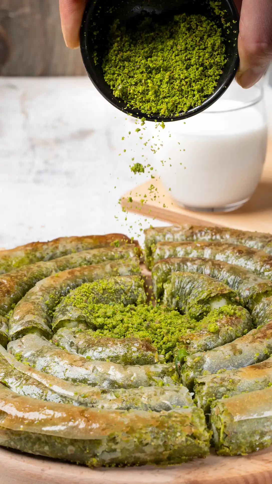 Katmer’i sunuma hazır hale getirmek için 180/200° ısı derecesine sahip bir fırında, 4/6 dakika pişirmeniz yeterlidir.