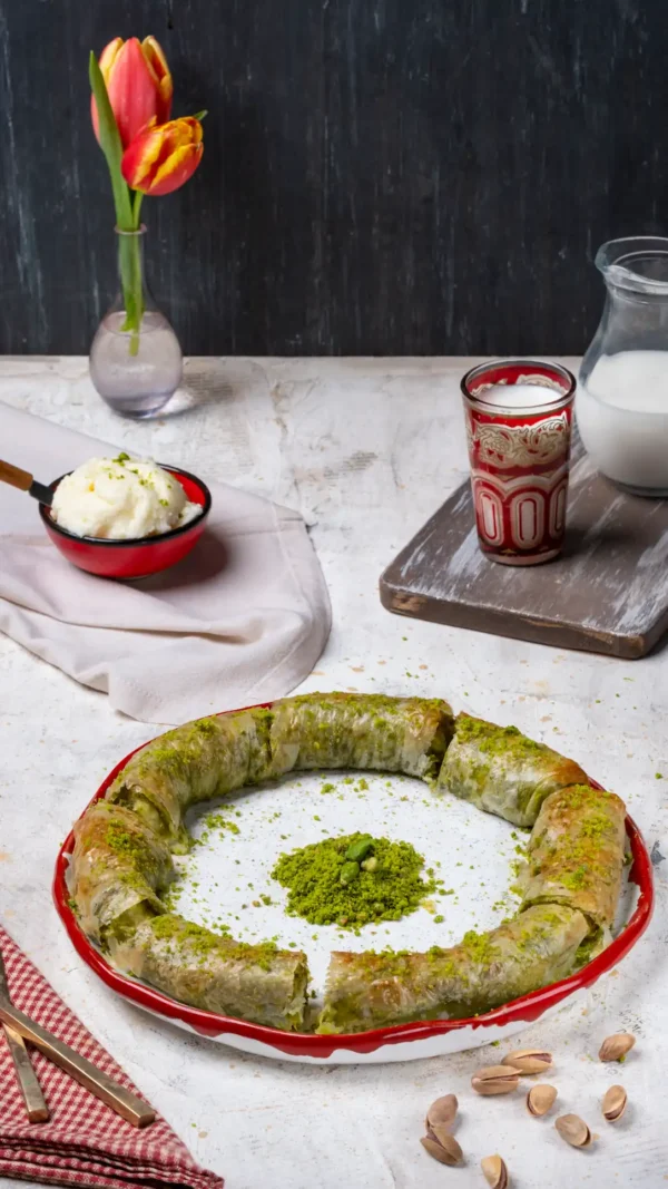 Katmer’i sunuma hazır hale getirmek için 180/200° ısı derecesine sahip bir fırında, 4/6 dakika pişirmeniz yeterlidir.